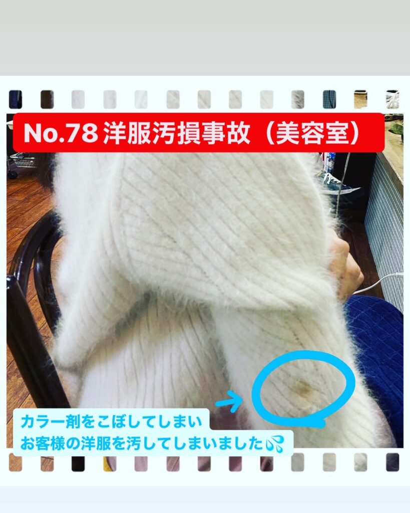 スタッフが手を滑らせてカラー剤をお客様の洋服にこぼしてしまいました😓💦