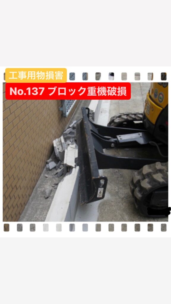 自社施工のブロックの損害だったので賠償責任保険の基本補償での対応ではなく、オプションの『工事用物損害』補償での対応となりました。