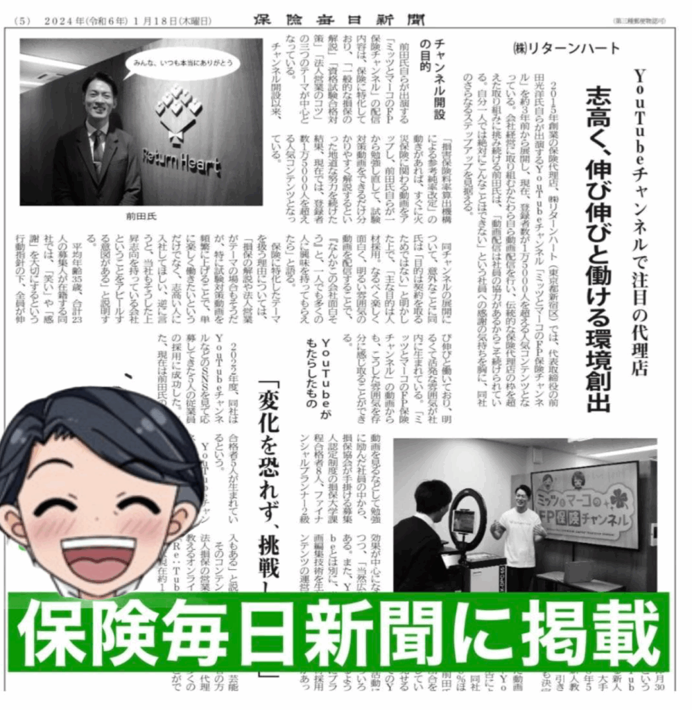 1月18日の保険毎日新聞に掲載されました🤗