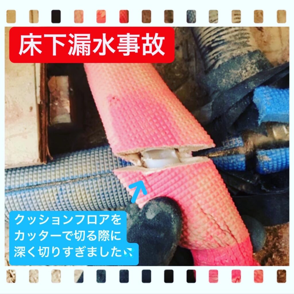 床下を通してあった給水管を切ってしまい床下に漏水させてしまった事故です。