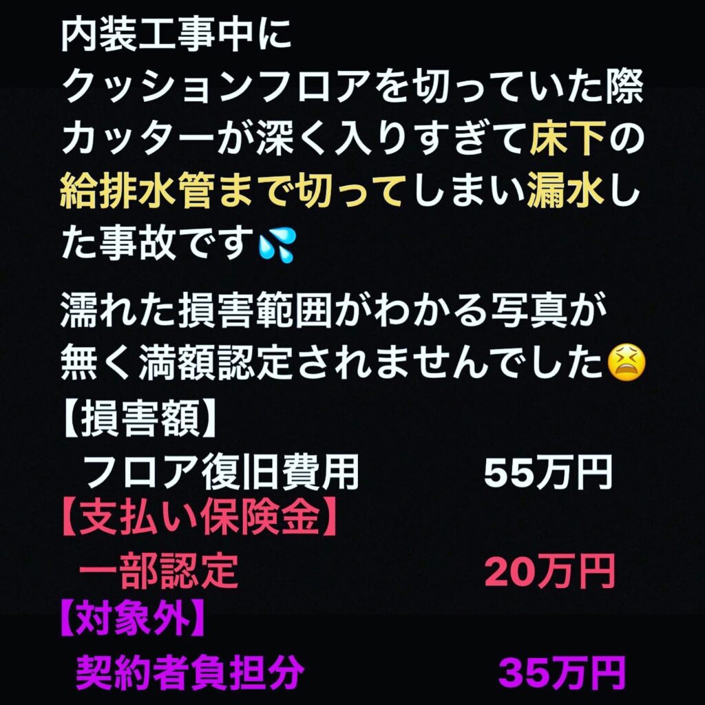 保険会社から損害範囲の断定が難しいとのことで削減されての支払いとなりました😫