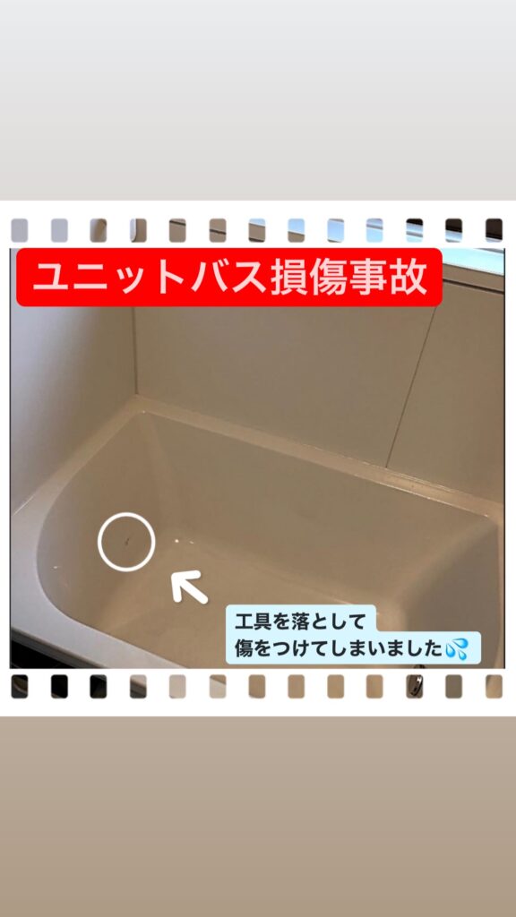 ユニットバスの浴槽を傷付けた賠償事故です😓