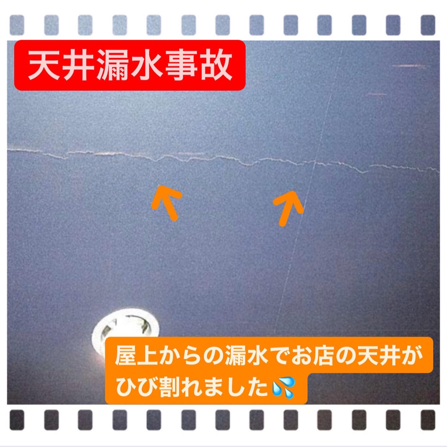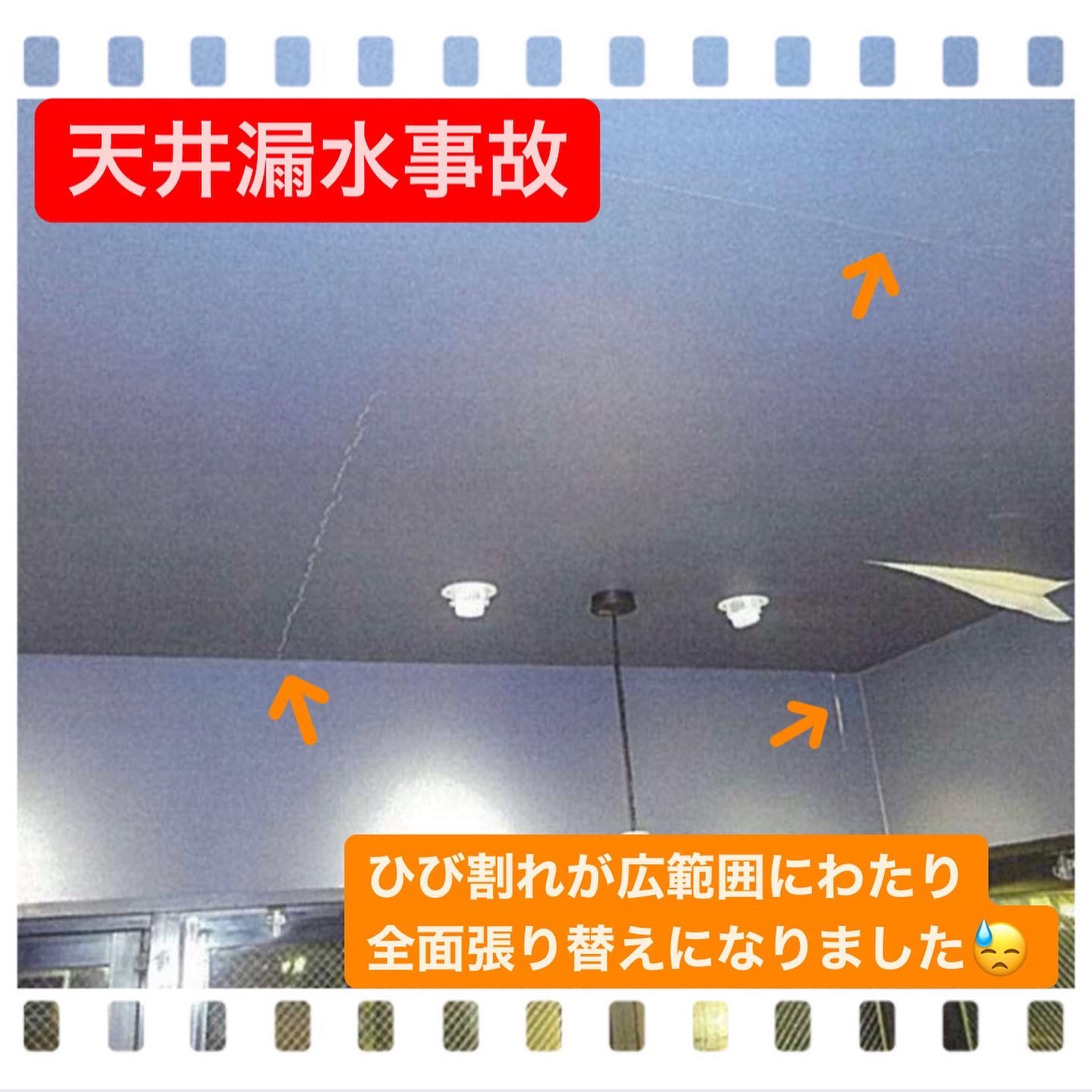 2階の天井全体にひび割れが発生した事故です💦