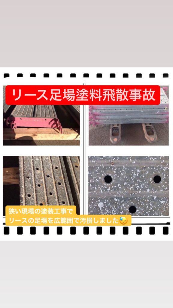 賠償責任保険としては足場材の時価額までしかお支払いできないため半額程度の認定となりました。