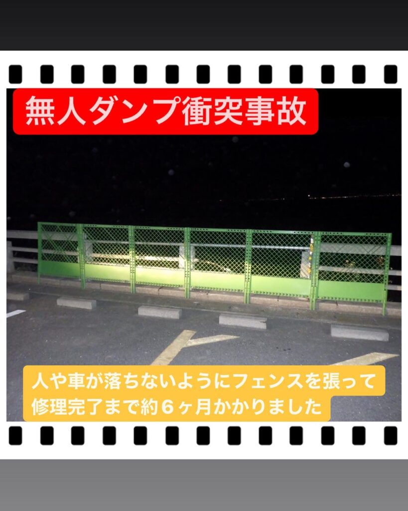 トラックの勢いがもう少しあれば突き破って落下していたかもしれません。。