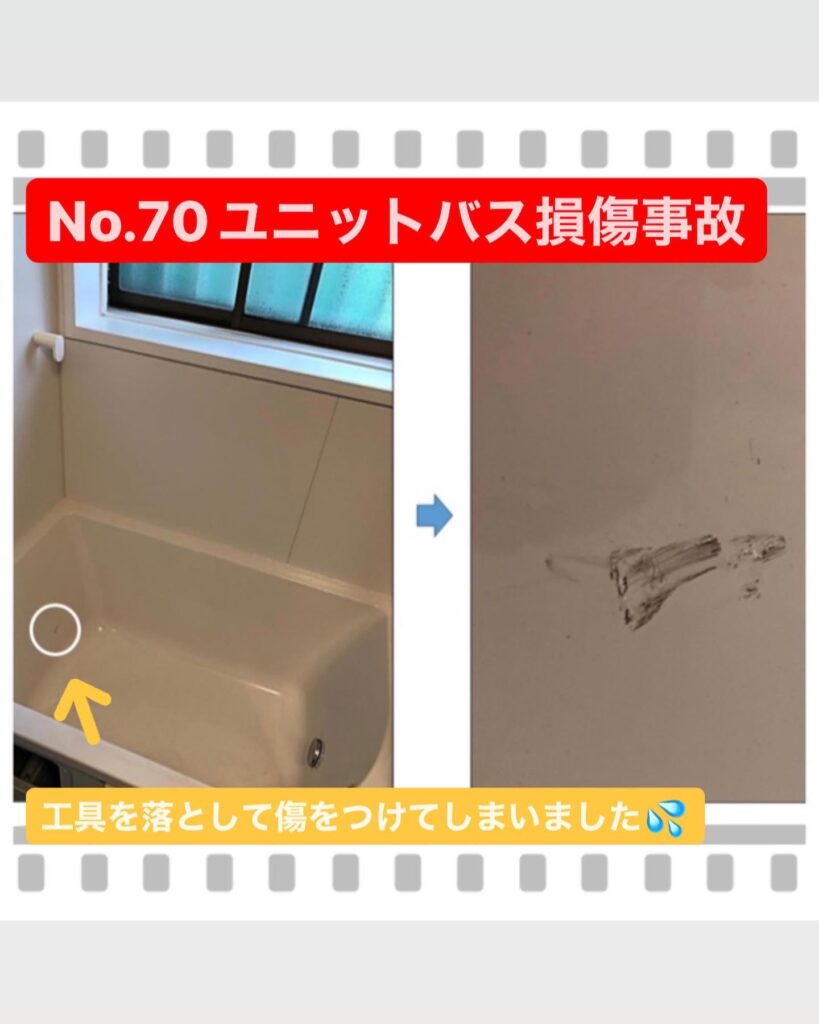 電動工具をユニットバスの浴槽に落として傷をつけてしまった事故です😩💦