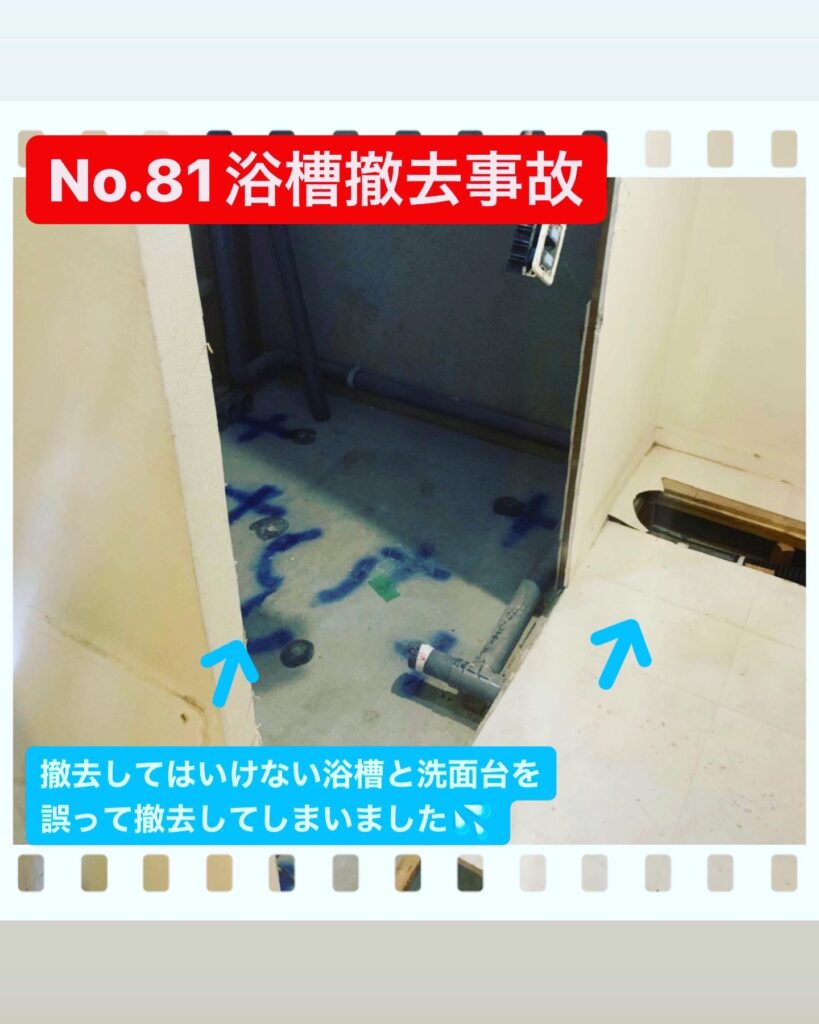 残すはずだった浴槽と洗面台を誤って撤去してしまった事故です😓
