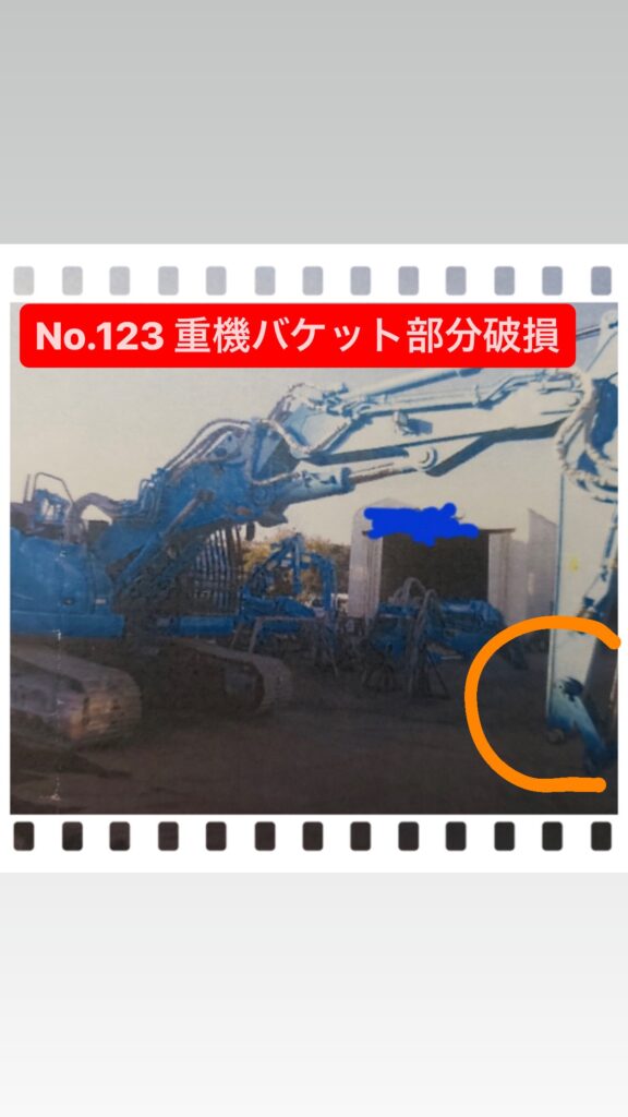 解体工事現場でリースの重機を使って作業をしている際に操作ミスでバケット部分を破損させてしまった事故です💦