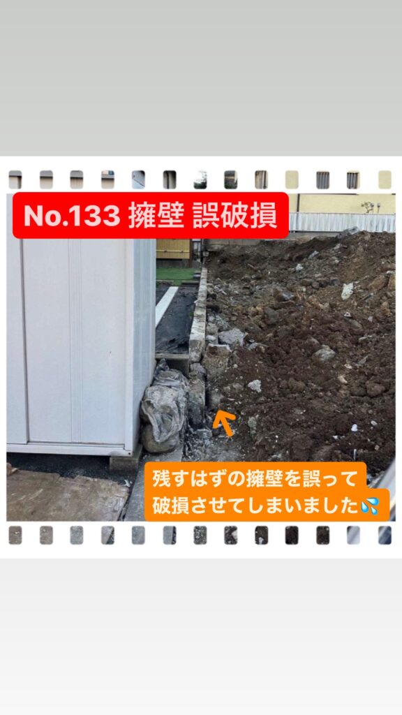 解体工事中に解体せずに残すはずのブロック擁壁を壊してしまった事故です💦