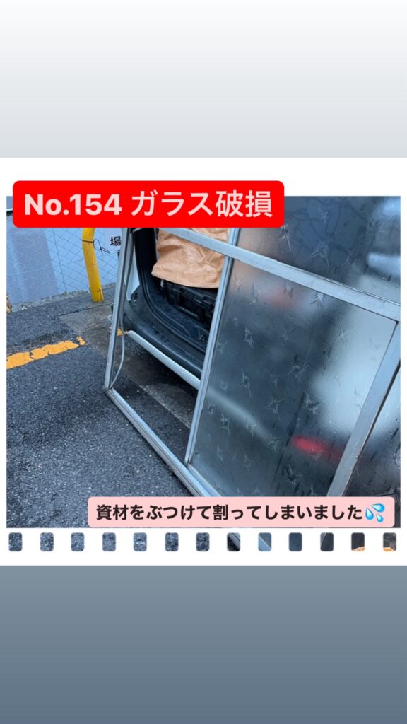 資材を窓ガラスにぶつけて割ってしまった事故です💦