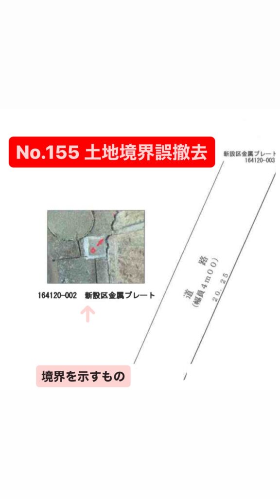 現場作業員が誤って土地の境界標も撤去してしまったという事故です💦