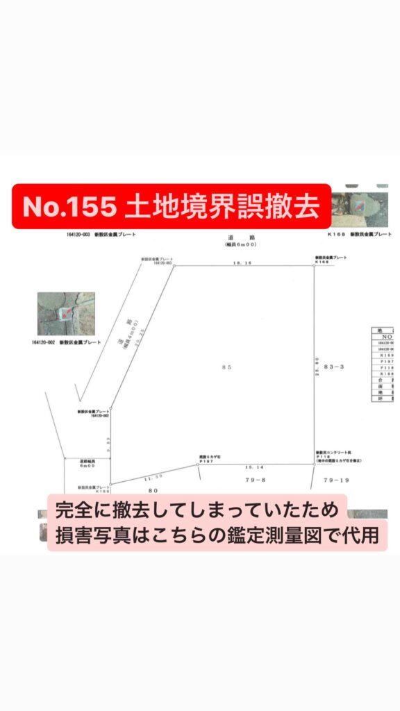 今回は土地の境界標を撤去してしまったという事故でしたが、