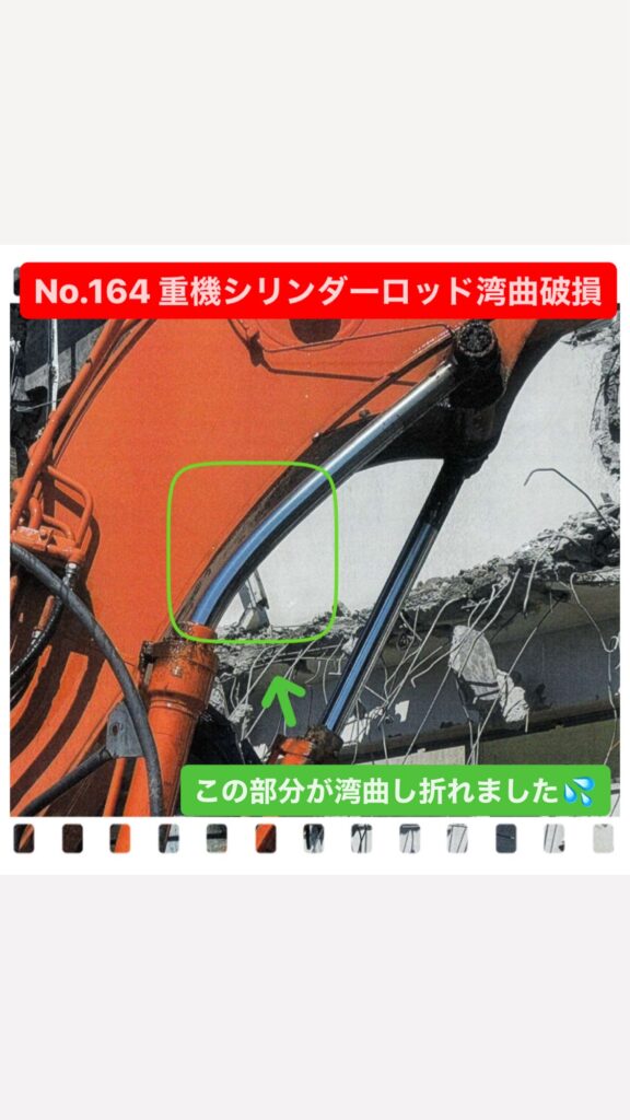 塀をアームで支えた際にシリンダーロッドが湾曲破損しポッキリ折れてしまった事故です💦