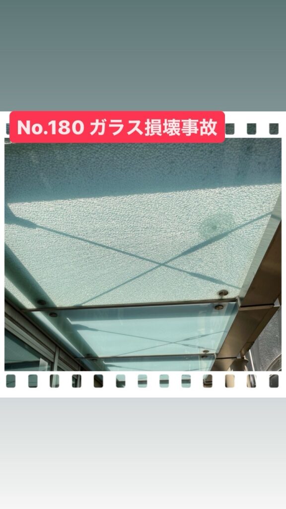 足場の作業中にハンマーを落としてしまい下にあったガラスを割ってしまった事故です。