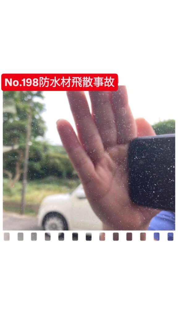 今回の事故では合計6台もの車に防水材が飛散してしまいました。