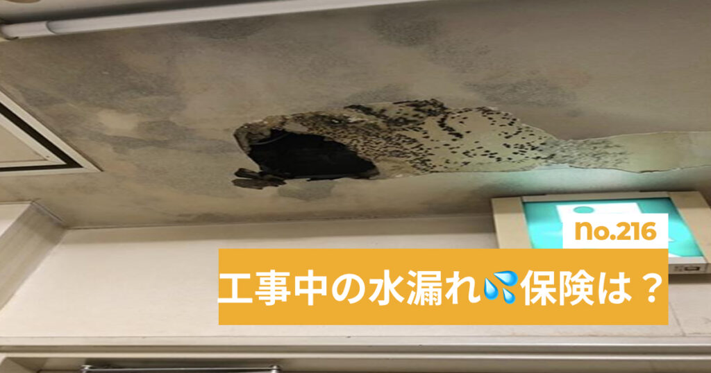 階下の天井部分の補修工事で賠償保険を使用しました。