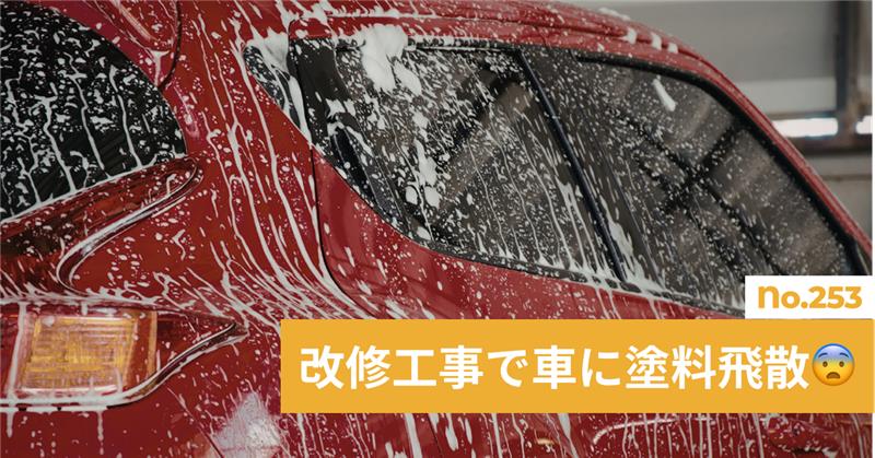 マンションの改修工事にて塗装工事中に下に、停めてあったお車に塗料飛散をさせてしまった事故です。