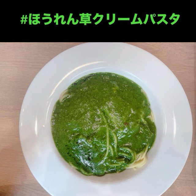 ミヤマ珈琲のほうれん草クリームパスタは見た目に反して、すっごく美味しく人気商品です👍